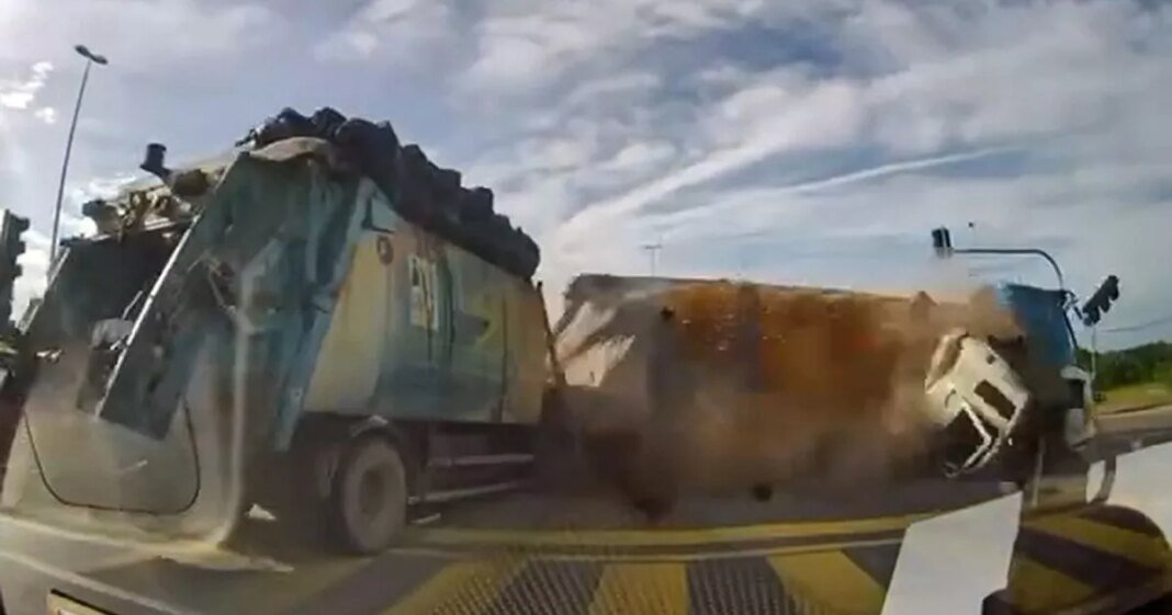 Terrifying video footage captured the moment a runaway tipper truck collided with a garbage truck and cars after running through traffic lights in Klang, Selangor, Malaysia. The incident occurred on Tuesday morning, October 21st, when the out-of-control lorry descended a hill, according to local authorities. A dashcam video revealed the chaotic scene as the tipper truck approached at high speed, causing significant damage to the vehicles involved.