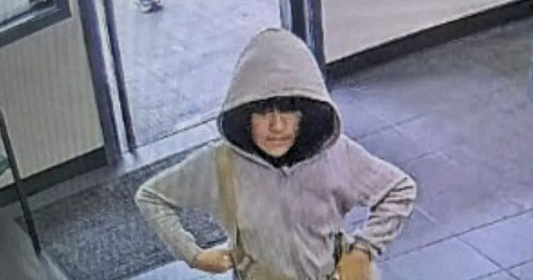 The images show Melodee wearing a gray hooded sweatshirt and what appears to be a wig different from her natural hair, as stated in a police report.